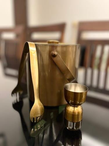 Incorporate this Gold-Plated Stainless Steel Ice Bucket Set into your home bar, and you'll not only elevate your beverage service but also add a touch of luxury and exclusivity to your gatherings. Whether you're hosting a soirée for friends or simply enjoying a quiet evening with loved ones, this set will become an indispensable part of your entertaining repertoire, ensuring that every pour and presentation is nothing short of extraordinary.