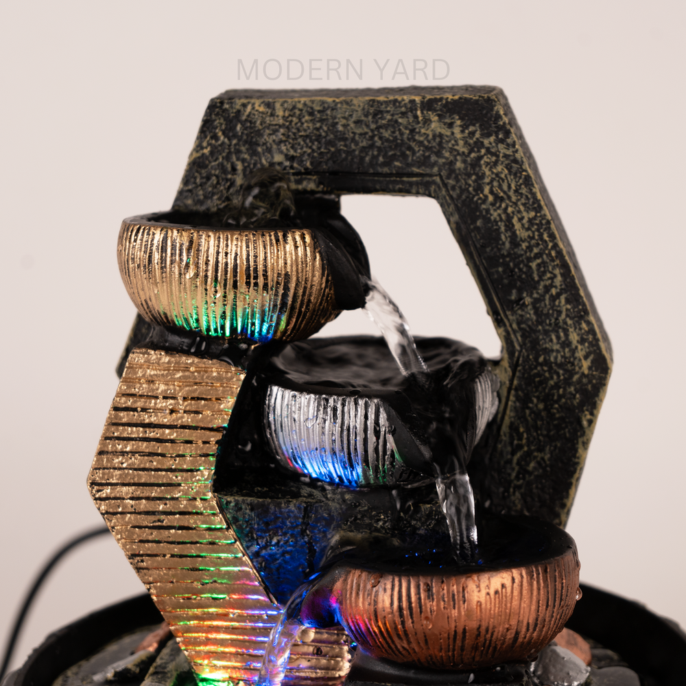 Discover serenity with our Small Fountain featuring built-in illumination and adjustable speed control. Let the gentle glow of the fountain's lights create a calming ambiance as you customize the flow of water to suit your mood. Compact yet impactful, it effortlessly complements any space, whether indoors or outdoors. Elevate your surroundings with this elegant fountain, where tranquility meets innovation in a mesmerizing display of beauty and relaxation.