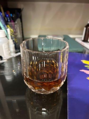 This glass has a premium feel! The design is classy and adds a touch of elegance to my evening drink. Feels sturdy and comfortable to hold.